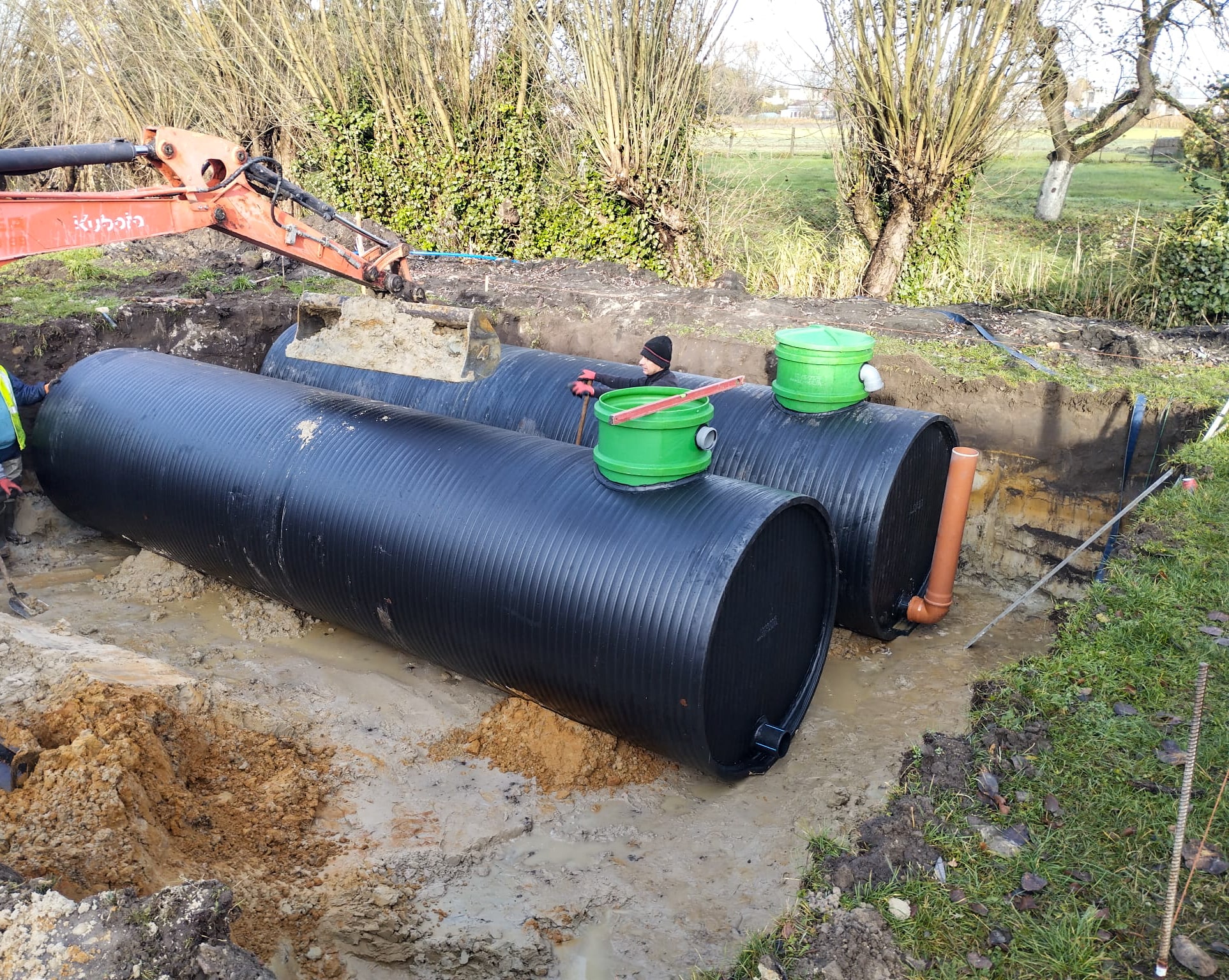 W ramach zadania zamontowano trzy podziemne zbiorniki na deszczówkę o pojemności 10 m³ każdy. Zgromadzona w nich woda posłuży do nawadniania terenów zielonych za budynkami, dzięki systemowi rozprowadzania wody i zraszaczom.