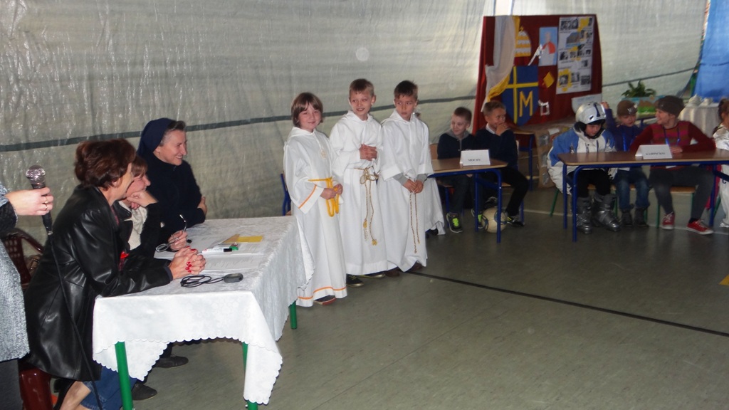 W ramach przygotowanych konkurencji uczestnicy odpowiadali na pytania dotyczące życia i działalności Jana Pawła II, wykonywali ćwiczenia sprawnościowe, prezentowali przygotowane piosenki, przygotowywali pyszne kanapki. Całość oceniali jurorzy w osobach: siostra dyrektor Teresa Matyjaszczyk, p. Lucyna Kaczmarek, p. Anna Skorupińska, p. Włodzimierz Chrzanowski i p. Piotr Spottek. Dla uczestników przygotowano atrakcyjne nagrody i upominki oraz pyszną niespodziankę, która wszystkim bardzo smakowała.