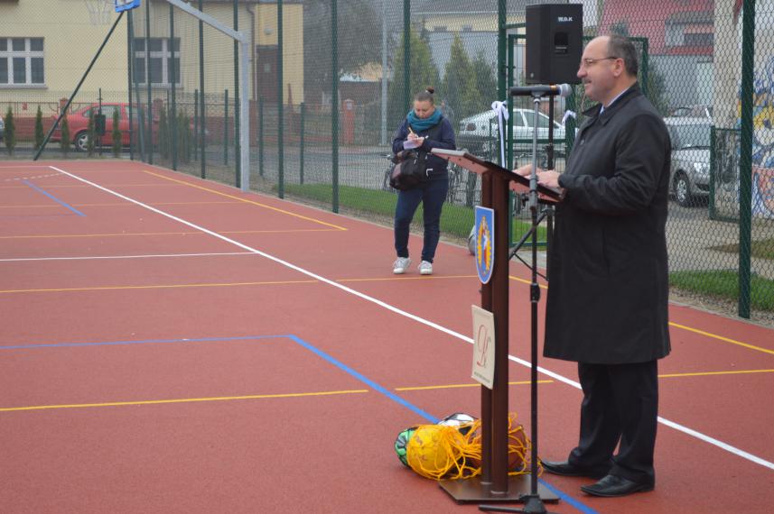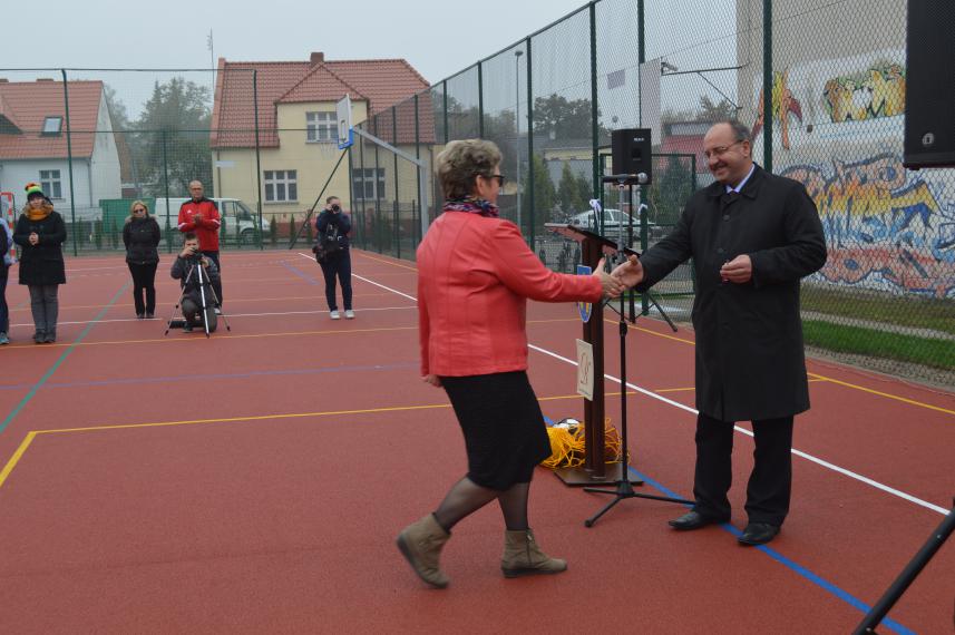 W związku z tym, w dniu dzisiejszym chciałbym przekazać na ręce gospodarza obiektu - Pani  Dyrektor Lucyny Bobińskiej - klucze od bramy wejściowej, oczywiście z założeniem, że używane będą jak najrzadziej, bowiem boisko będzie miało charakter ogólnodostępny.