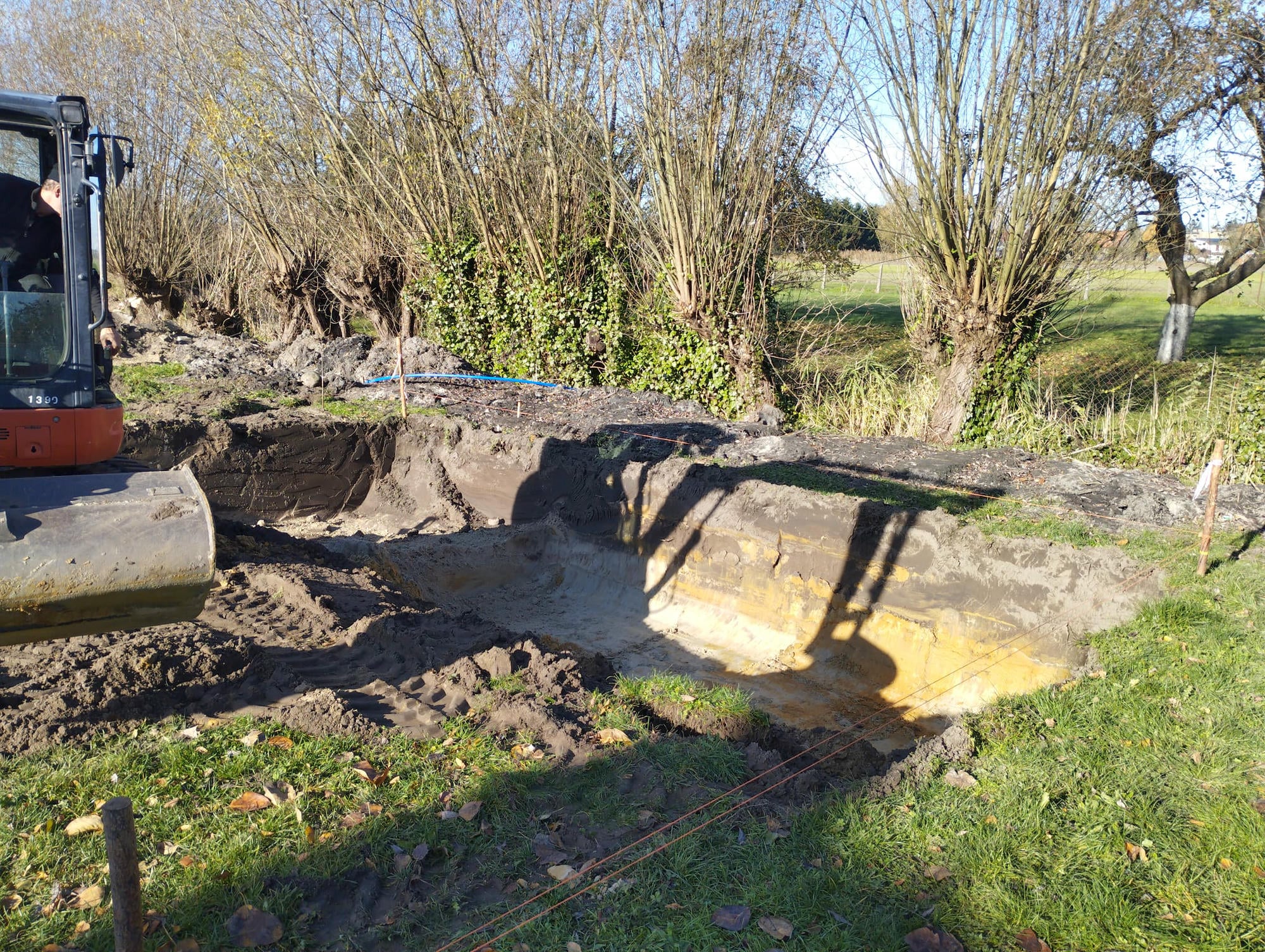 W ramach odrębnego zadania wyczyszczony został pobliski przepust pod drogą wojewódzką oraz pogłębiono rów, którym odprowadzane będą wody opadowe z nowo powstającej hali sportowej przy szkole podstawowej.