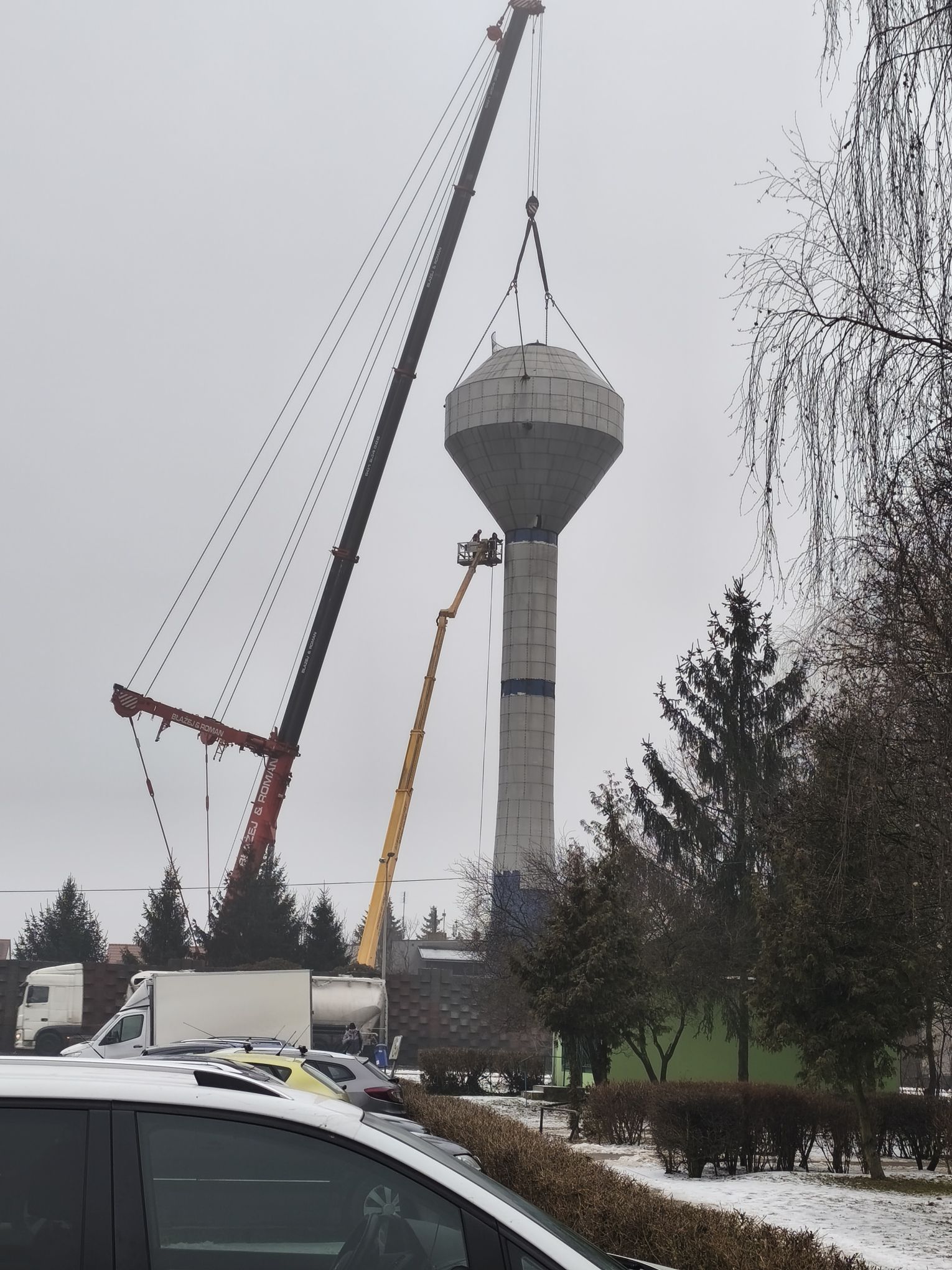 Dobiegają końca prace związane z rozbiórką wieży ciśnień przy ul. Spokojnej. Decyzja o likwidacji obiektu została podjęta w ubiegłym roku, m. in. na podstawie wyników ekspertyzy technicznej wykonanej w 2021 roku.