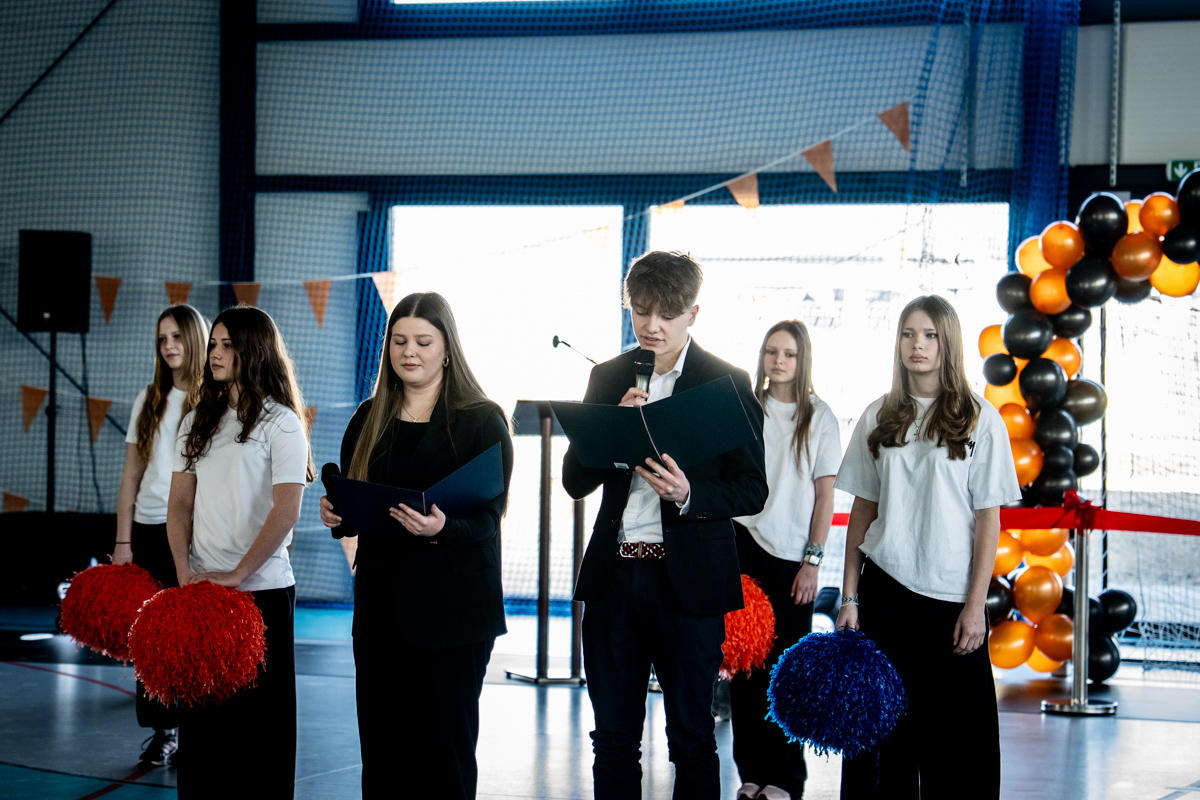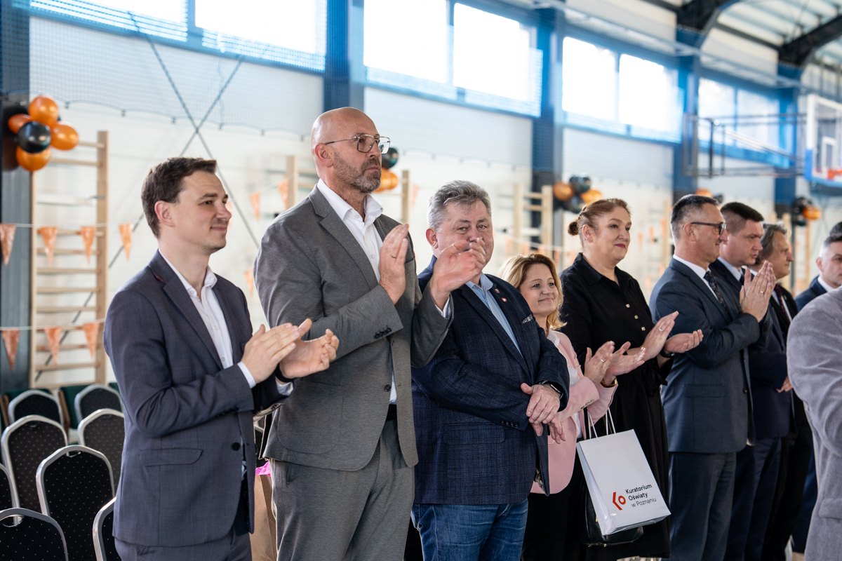 Uroczystego przecięcia wstęgi dokonali gospodarze Burmistrz Wolsztyna Dominik Tomiak, dyrektor szkoły Marcin Wilczyński wraz z zaproszonymi gośćmi Ministrem Sportu i Turystyki Jakubem Rutnickim, posłem Marcinem Porzuckiem, byłym dyrektorem szkoły Marcinem Tajchertem oraz Przewodniczący Rady Samorządu Uczniowskiego.