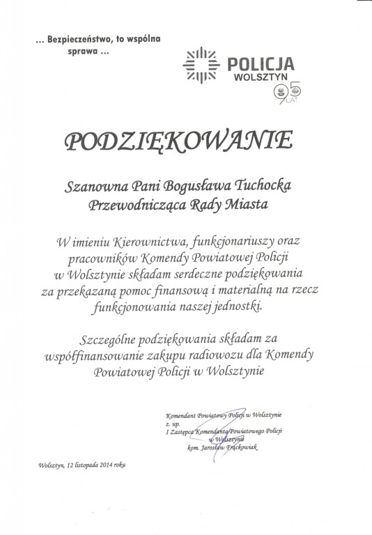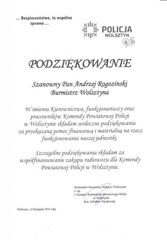 Podziękowania od Wolsztyńskiej Policji